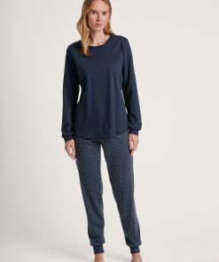 CALIDA Women’s Nightwear Midnight Love Long Sleeve Nightdress – 110 Cm Length | Sterling Blue