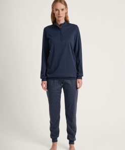 CALIDA Women’s Nightwear Midnight Love Long Sleeve Nightdress – 110 Cm Length | Sterling Blue