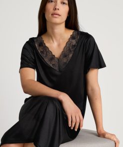 CALIDA Women’s Nightwear Glamorous Nights Short-sleeved Nightdress, Length 120 Cm | Black
