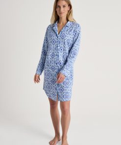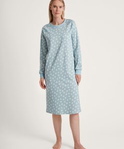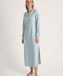 CALIDA Women’s Nightwear Lovely Nights Long Sleeve Nightdress – 95 Cm Length | Hydrangea Blue