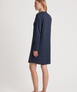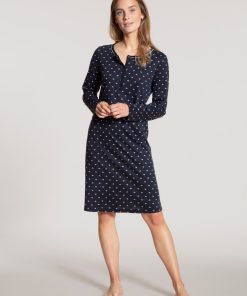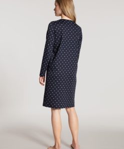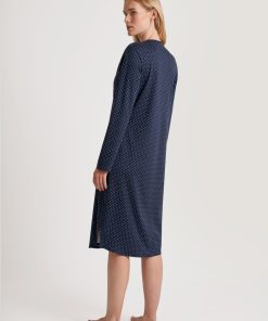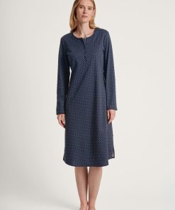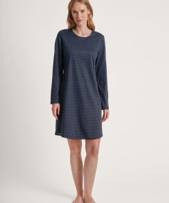 CALIDA Women’s Nightwear Midnight Love Long Sleeve Nightdress – 110 Cm Length | Sterling Blue