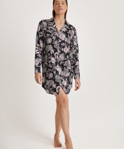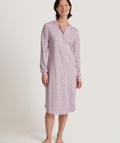 CALIDA Women’s Nightwear Midnight Flowers Long Sleeve Nightdress – 110 Cm Length | Fragrant Lilac