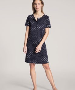 CALIDA Women’s Nightwear Lovely Nights Short-sleeve Nightdress – 95 Cm Length | Hydrangea Blue