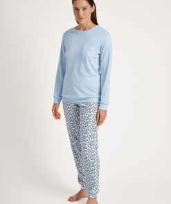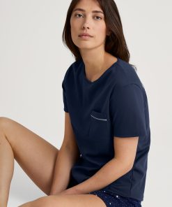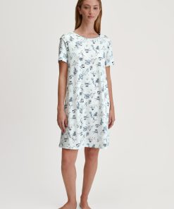 CALIDA Women’s Nightwear Swiss Resort Short-sleeved Nightdress, Length 95 Cm | Cascade Blue