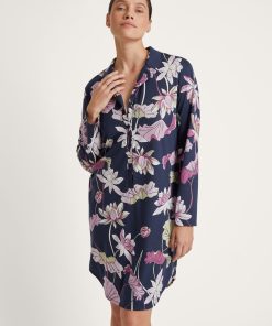 CALIDA Women’s Nightwear Favourites Glow Long-sleeved Shirt, Button-through | Peacoat Blue