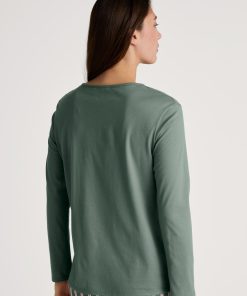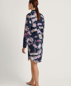 CALIDA Women’s Nightwear Favourites Glow Long-sleeved Shirt, Button-through | Peacoat Blue