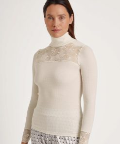 CALIDA Women’s Underwear Silky Wool Glam Long-sleeve Turtleneck Shirt In Wool-silk | Charm Cream