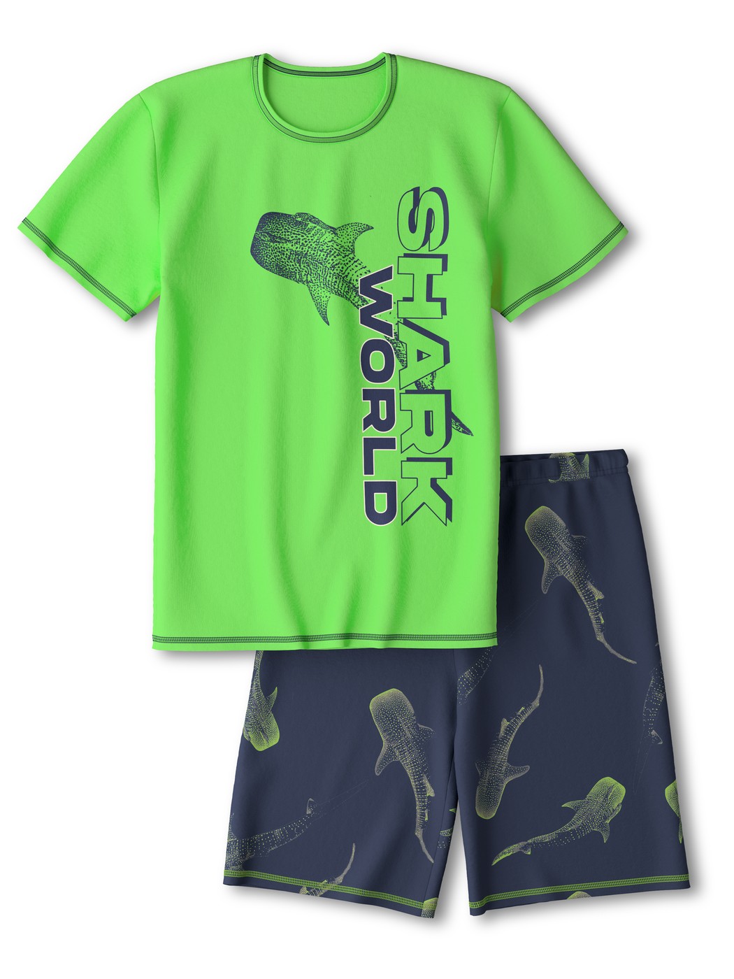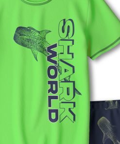 CALIDA Kid’s Boys Kids Shark Short Pyjamas In Pure Organic Cotton | Bright Green
