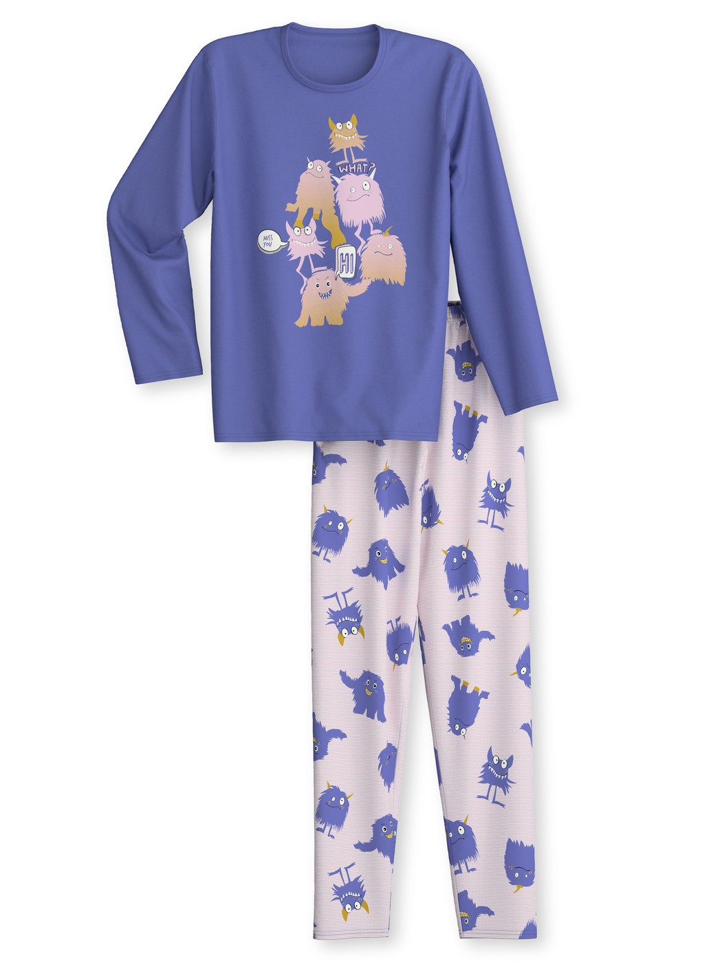 CALIDA Kid’s Girls Kids Monsters Pyjamas, Long | Violet Storm