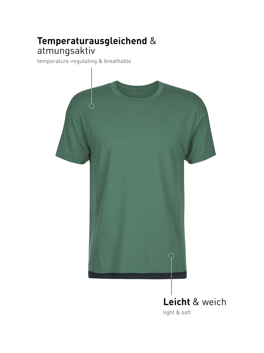 Maintaining a healthy balance isn’t always easy, but the short-sleeve shirt from the DEEPSLEEPWEAR BALANCING collection from CALIDA supports the body’s natural temperature regulation with its revolutionary combination of high-tech natural fibres and cutting-edge processing. The temperature- and moisture-regulating blend of TENCEL™ Modal Micro and SeaCell™ modal ensures a healthy sleeping environment, whatever the weather. The shirt feels silky-soft against the skin and nourishes it night after night with regenerating vital substances derived from Icelandic seaweed. In short, it’s an wardrobe staple.
