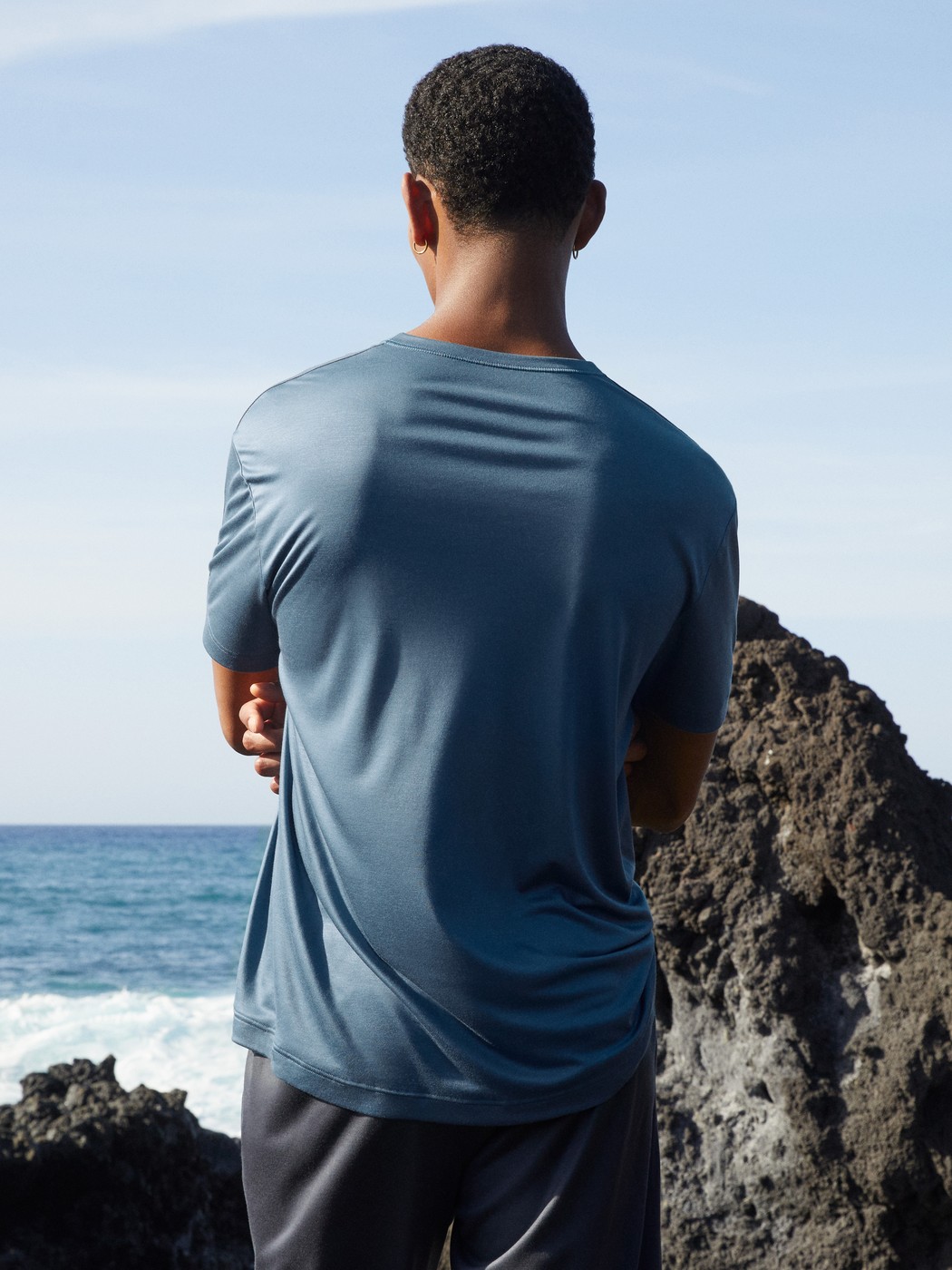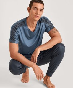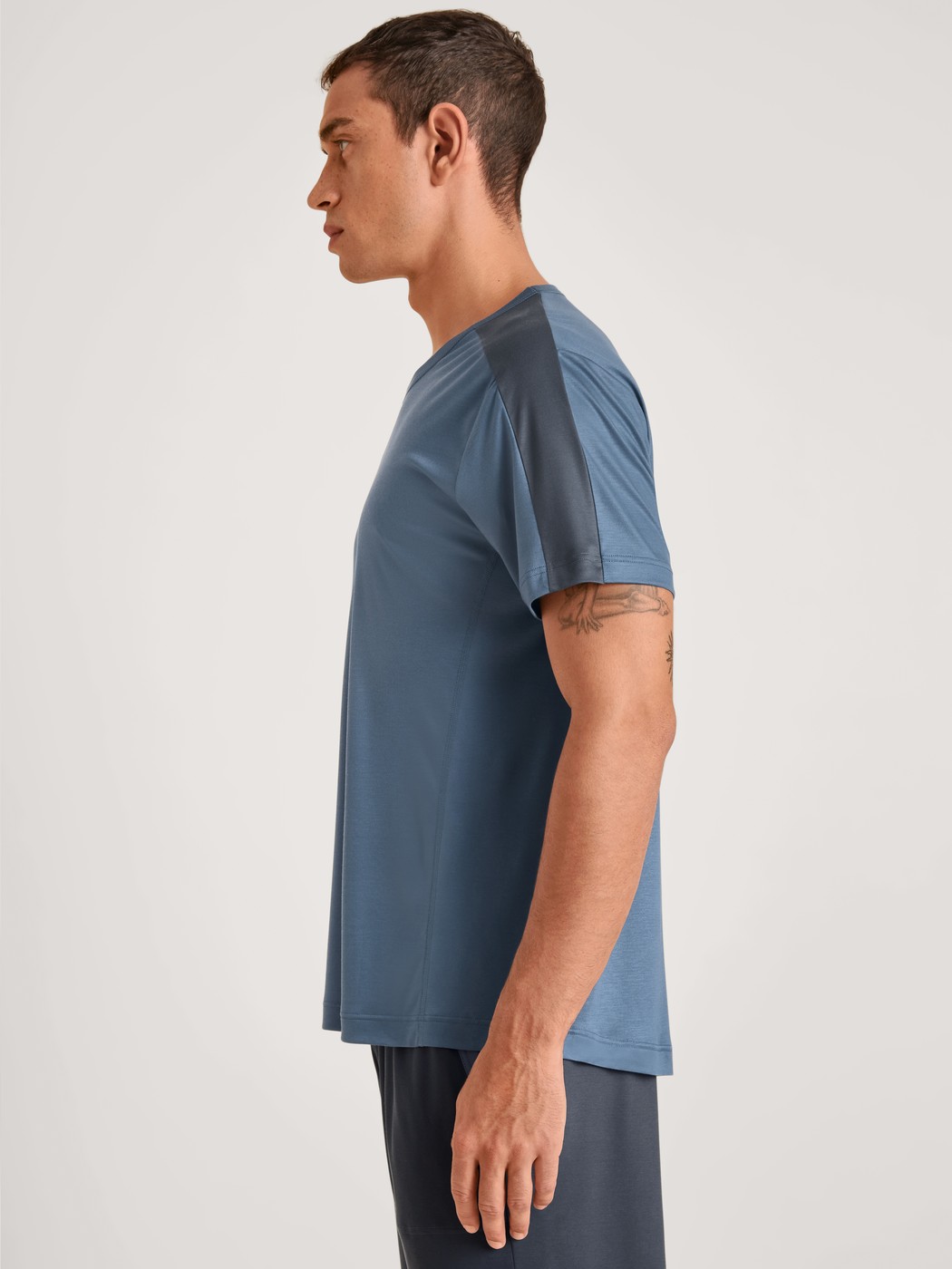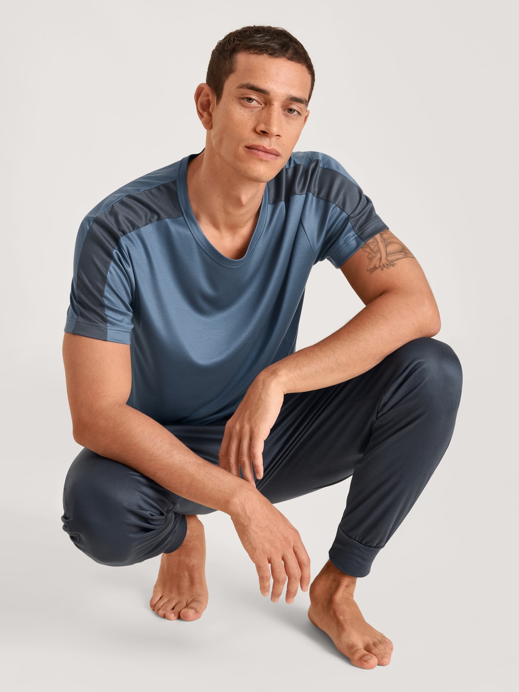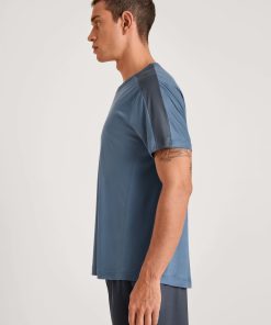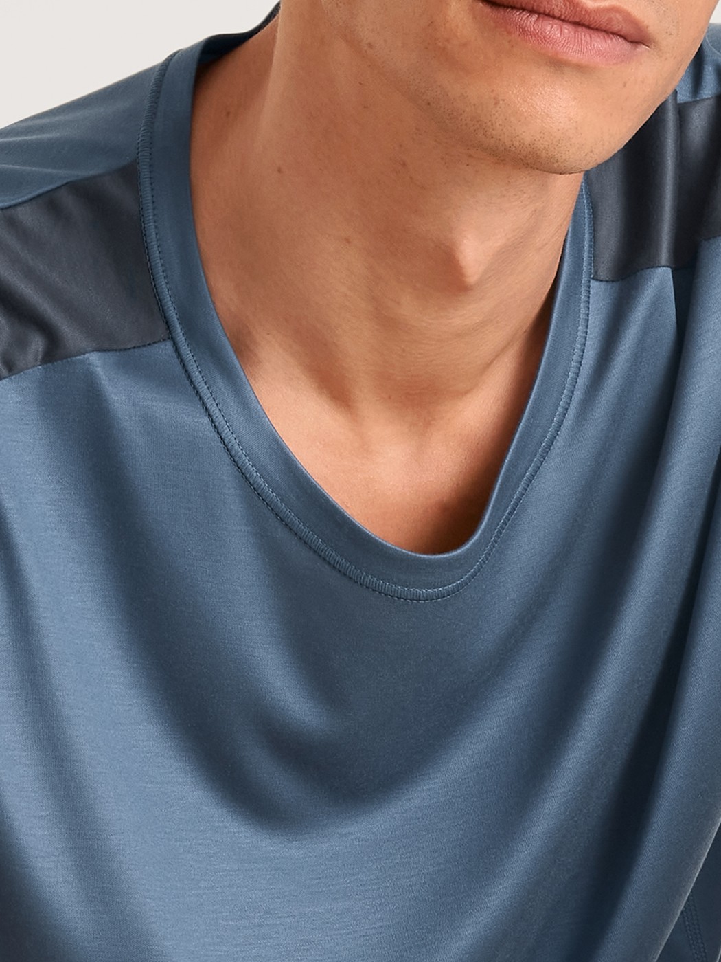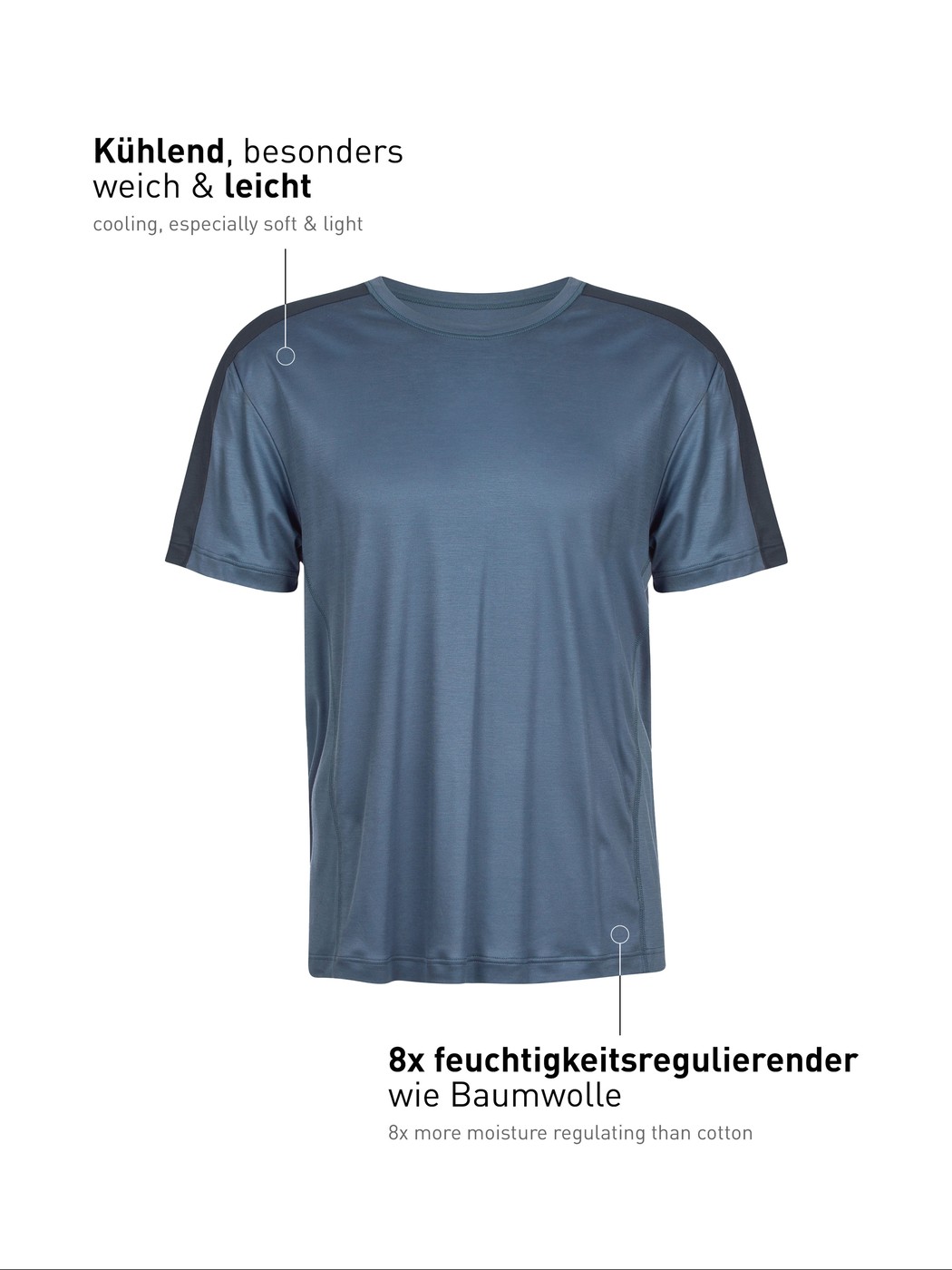 Getting a good night’s sleep is vital! With the T-shirt from the DEEPSLEEPWEAR COOLING collection, CALIDA bids farewell to sweaty interludes and uncomfortable nights. The short-sleeve shirt made from cooling TENCEL™ Lyocell boasts the perfect combination of high-tech natural fibres and cutting-edge processing, so that it nestles softly and gently against the skin. Made of 100% TENCEL™ Lyocell, the fabric feels pleasantly airy, cool and dry all night long while regulating moisture 8 times more efficiently than cotton. The sporty contrast details on the shoulders and the longer back section give the shirt a thoroughly modern look.