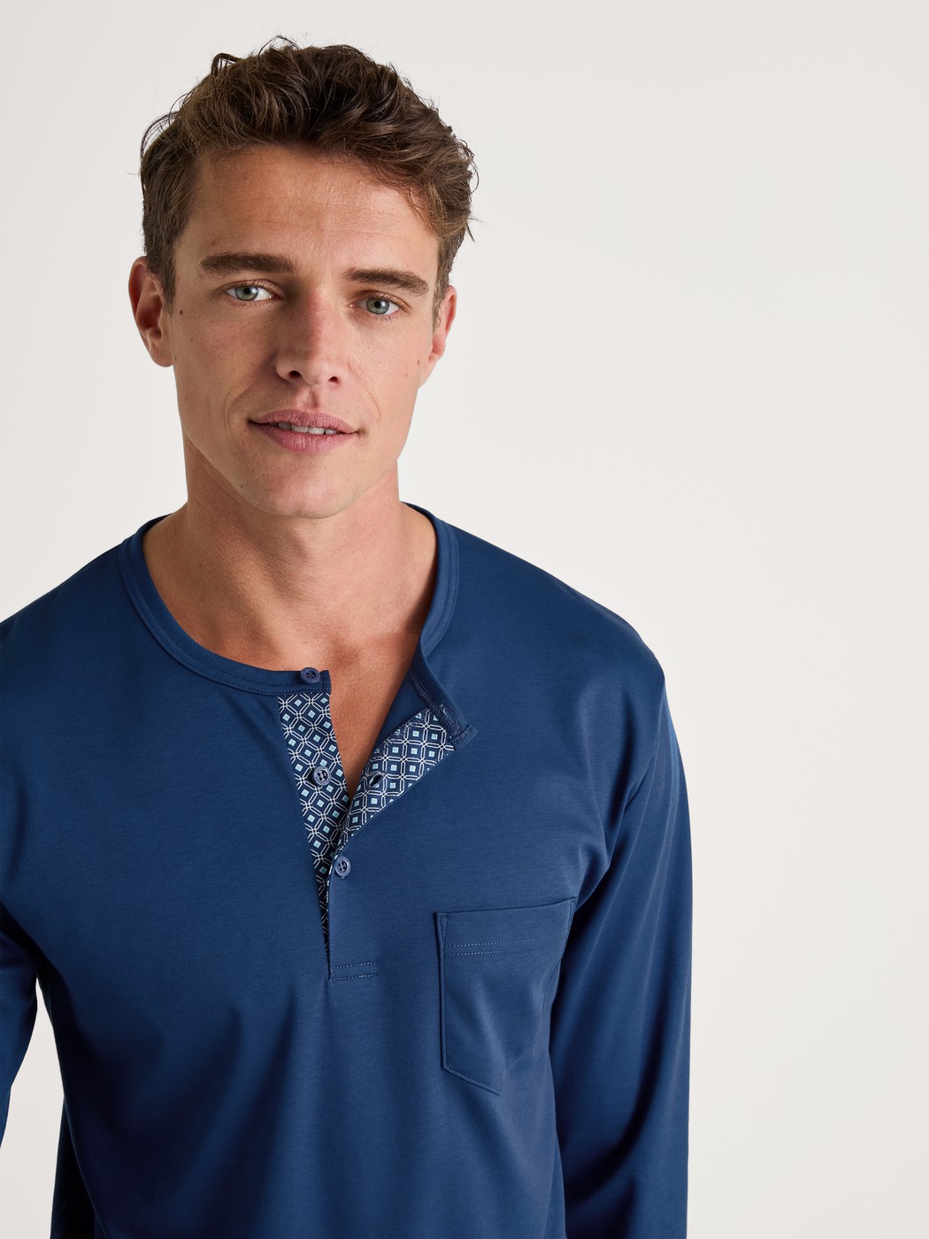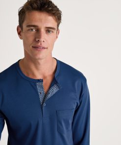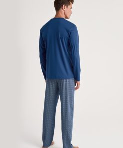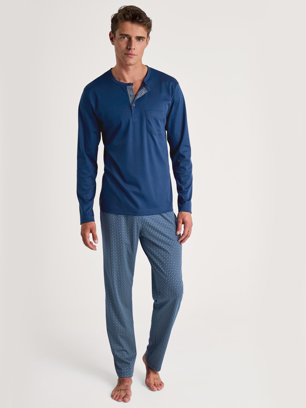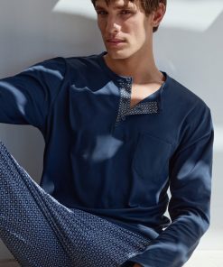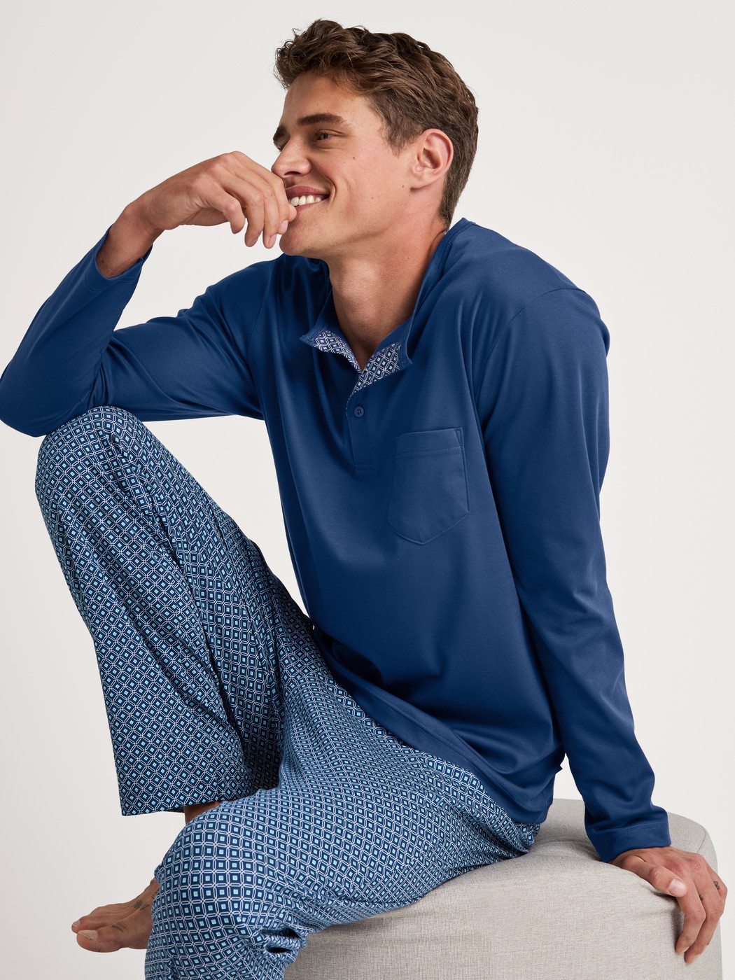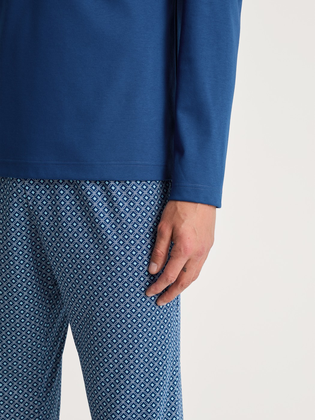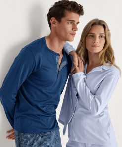 In timeless Pottery Blue and with a minimalist print reminiscent of traditional ceramic tiles, the short pyjamas, classic pyjamas, cuffed pyjamas and buttoned pyjamas from the RELAX CHOICE line have an artisanal Greek look. This sleepwear line is made from high-quality swiss+cotton and will get you dreaming of picturesque landscapes.