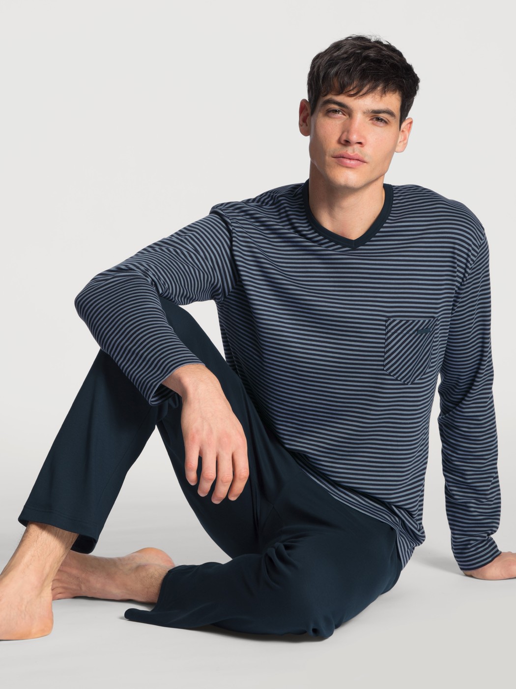 CALIDA Men’s Sleepwear Relax Streamline Pyjamas, Long | Dark Sapphire