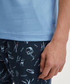 Inspired by the crisp air and calm of the Swiss Alps, this nightwear collection invites you to unwind in comfort. Made from 100% cotton in premium swiss+cotton quality with a soft interlock knit, it offers gentle warmth and a silky-smooth feel on the skin. The charming all-over print, featuring iconic Swiss motifs from cable cars to cowbells, brings a touch of alpine dreaming to bedtime. For restful nights with style, comfort and a sense of place.