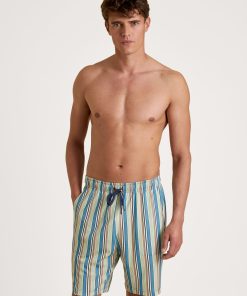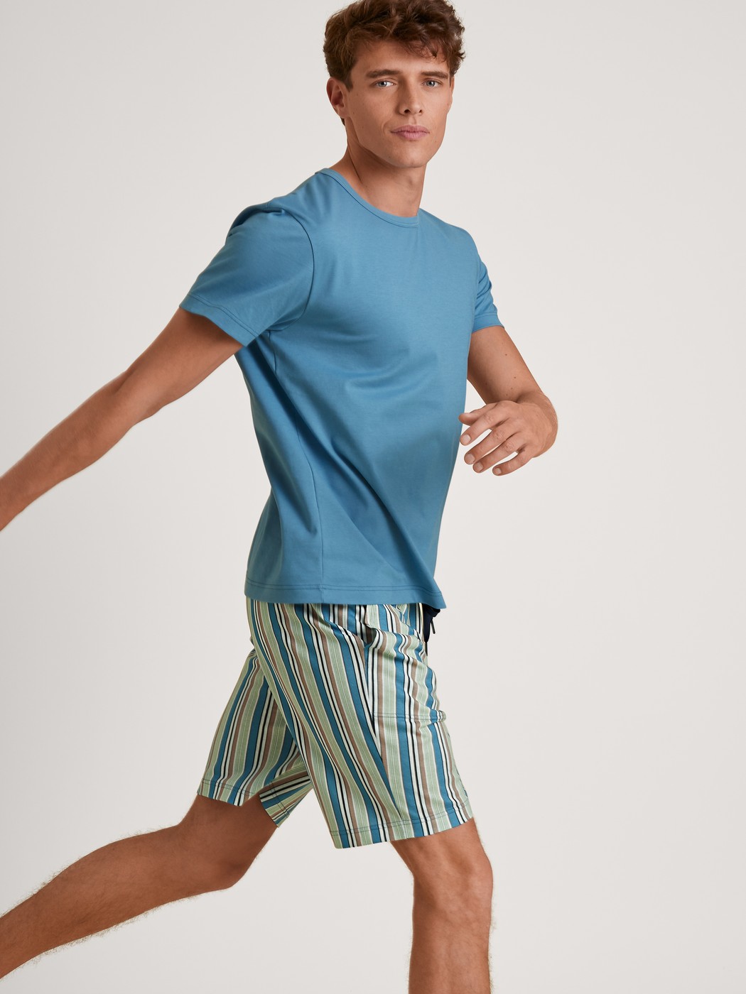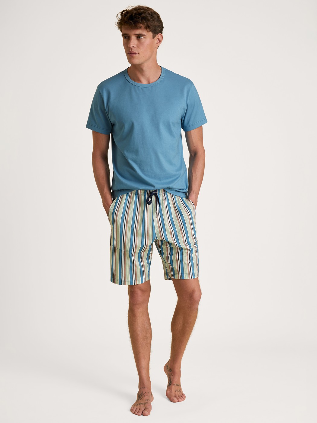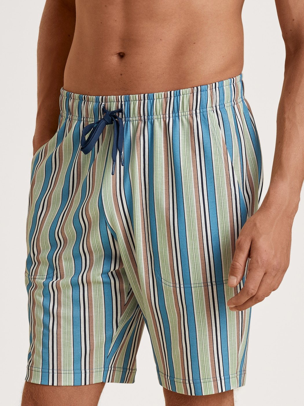 These sporty shorts in a bright design from the REMIX SLEEP WEEKEND line by CALIDA pair perfectly with the block-colour shirts from the REMIX lines, but look just as good worn on their own. The pure cotton fabric makes the shorts extra comfortable – perfect for getting comfy and relaxing. The drawstring tie and practical side pockets complement the casual look.