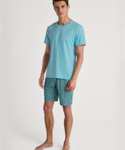 CALIDA Men’s Sleepwear Rmx Sleep Weekend Short-sleeved Shirt | Aquamarine