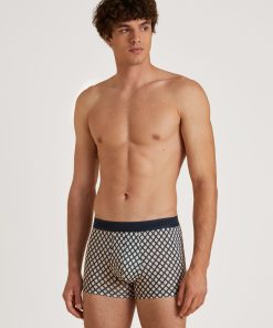 CALIDA Men’s Underwear Grafic Cotton Boxer Brief | Insignia Blue Print
