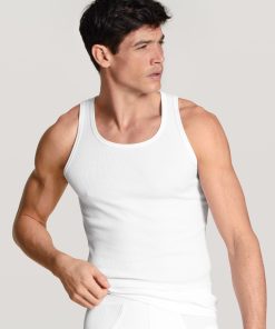 Masculine, sporty style in soft single jersey: The NATURAL BENEFIT athletic shirt is a breathable CALIDA basic for everyday wear. The high-quality cotton with smooth finish is almost invisible underneath tops and business shirts. Changing on the fly? No problem: the classic undershirt comes in a twin pack.