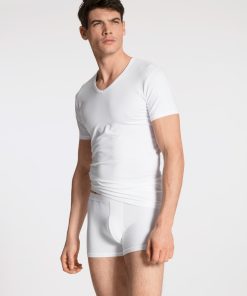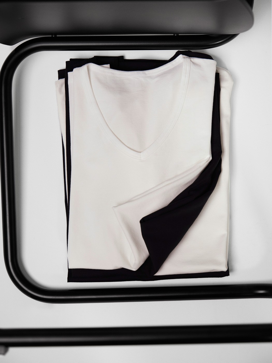 This twin pack features modern v-neck T-shirts from the Natural Benefit collection by CALIDA that combine a timeless shape and premium quality, while boasting a perfect fit and an excellent finish thanks to the finest jersey cotton. The classic modern cut with a v-neck is also ideal for wearing underneath your business shirt on cooler days.