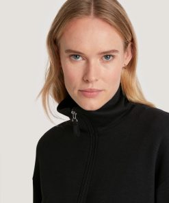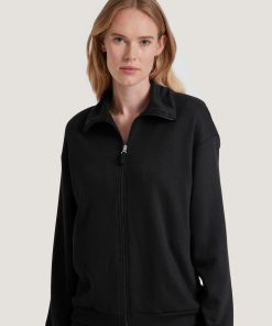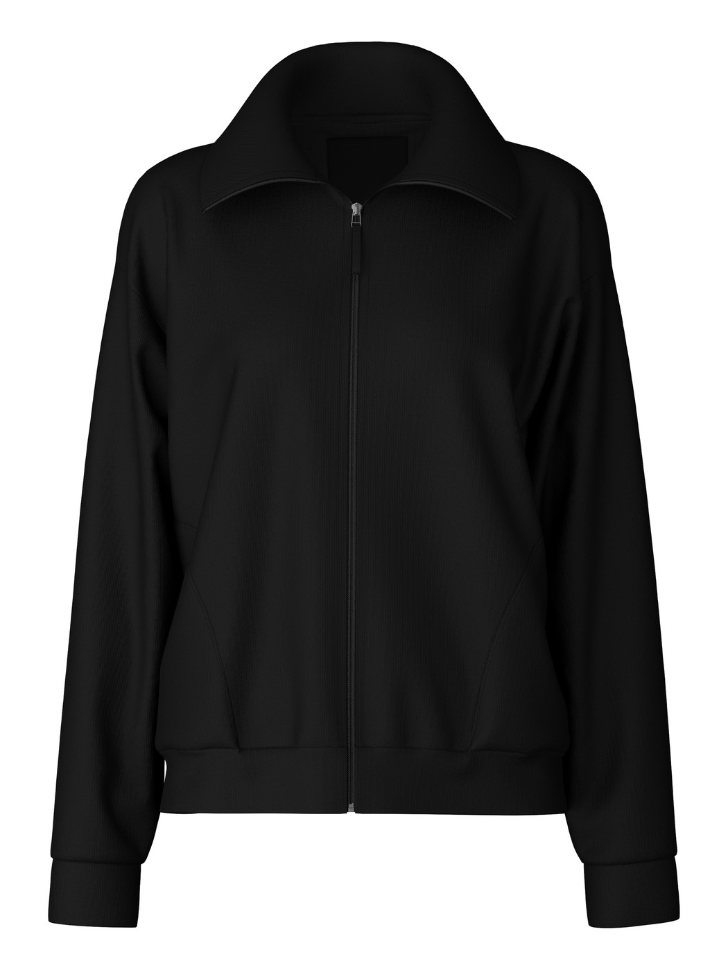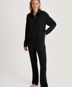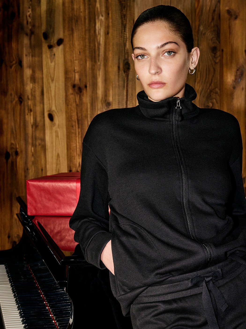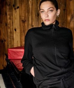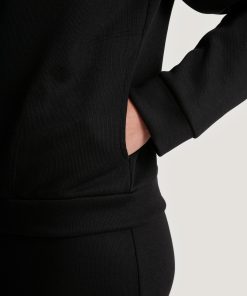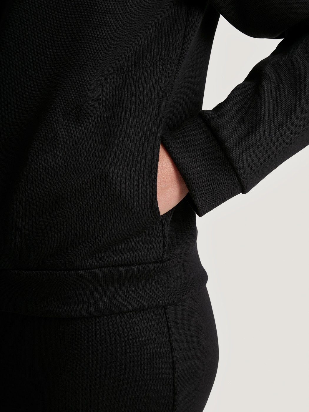 The LOUNGE ELEMENT series presents a cosy lounge matching set consisting of an oversized jacket and trousers in a trendy flared cut in a classic, timeless black and knitted look. Made from cotton, TENCELâ„¢ modal and polyamide, the knitted double-face quality of the materials offers exceptional softness, breathability and durability, making the styles perfect for creative layering looks.