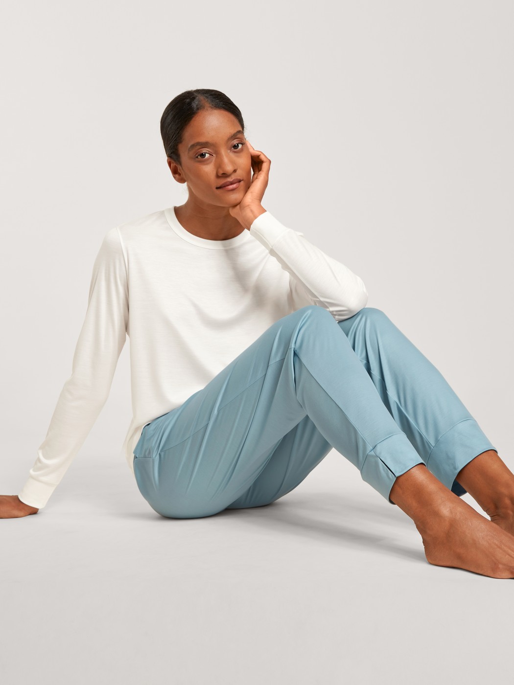 When the LOUNGE & RELAX long-sleeved shirt by CALIDA accompanies the extra-sweet dreams, the alarm clock has no chance. The super-relaxed cut with elastic cuffs pampers the senses at least as much as the soft modal fibers. With this soothingly beautiful shirt, stress doesn’t even arise.