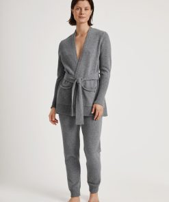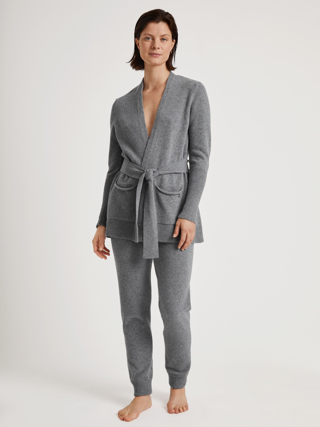 With THE COSY COLLECTION, loungewear becomes a stylish tribute to moments of ease. The collection includes a coat, a wrap jacket, wide-leg lounge trousers and cuffed pants – all in the subtle shade Cosy Grey Melé. Made from 100% virgin wool (Merino), each piece offers exceptional softness and a luxurious feel. Effortlessly versatile – perfect for mindful pauses and moments of quiet elegance.