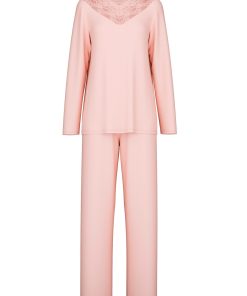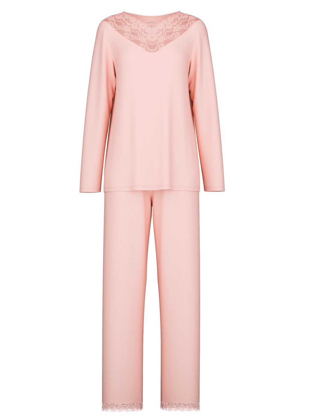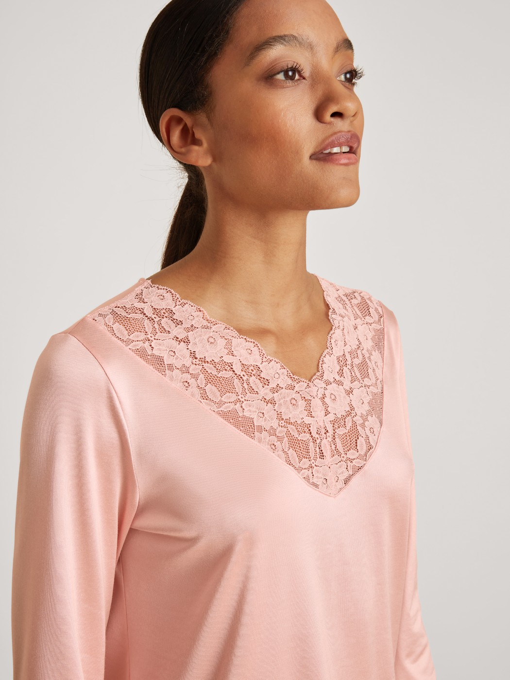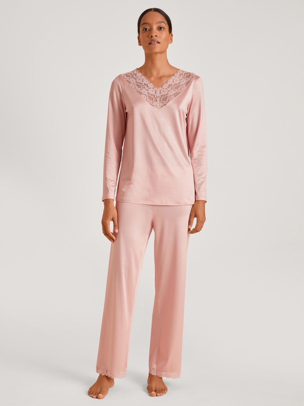 Enjoy the feel of a truly unique material against your skin: the CIRCULAR ROMANCE long-sleeve pyjama by CALIDA caresses the skin with a flowing blend of cotton and viscose. At the same time, it captivates the senses thanks to their feminine combination of lace details, a powdery shade and a simple cut. With this fresh, autumnal design, bedtime can hardly come fast enough.