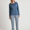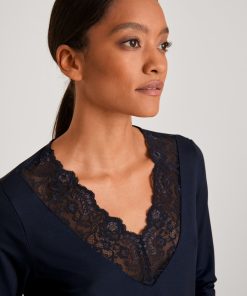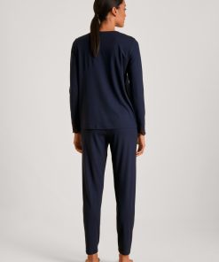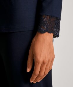 Some designs need no explanation. The ELEGANT DREAMS long-sleeve pyjama by CALIDA is one such case. This elegant sleepwear set, consisting of a lace-trimmed V-neck top and comfortable slip-on pants, boasts a simple charm. Thanks to the light, flowing Modal fabric, you’ll sleep comfortably at any temperature in this tribute to feminine beauty. Discover why the ELEGANT DREAMS collection has become a real customer favourite just like that.