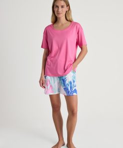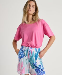 The FAVOURITES COAST mix & match range brings summer flair with an underwater world print in carnation pink on shorts, 7/8 trousers and a short-sleeved dress with a slight drape. The pieces are made from soft swiss+cotton/TENCELâ„¢ modal superlight fabric, which ensures lightness and breathability. A retro parasol stripe print in ice green adorns a short-sleeved nightshirt and straight-cut trousers. Plain-coloured T-shirts, shorts with a lace hem and 7/8 trousers in a Vichy check pattern complete the collection and offer maximum versatility. The wide range of possible combinations creates light, summery favourite outfits.
