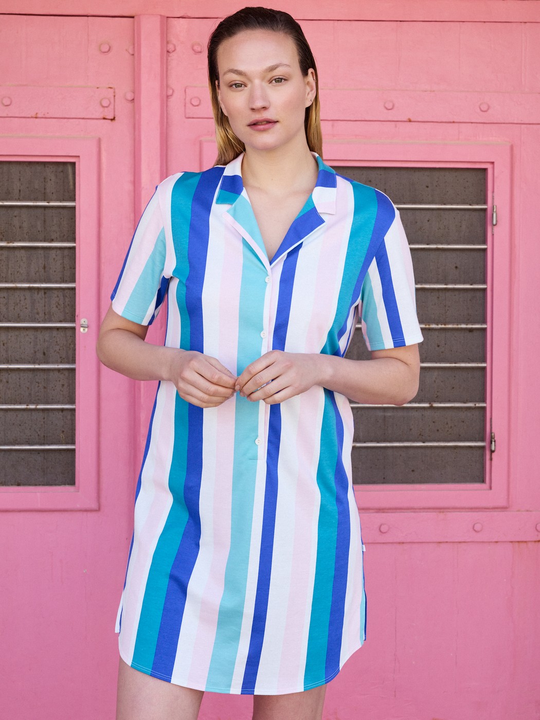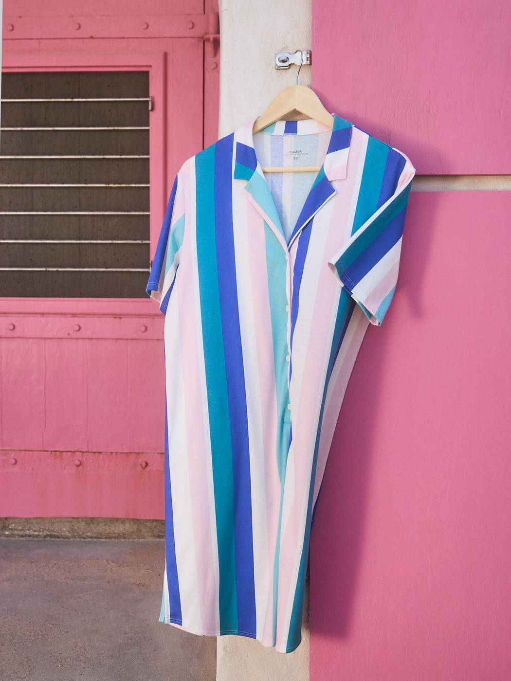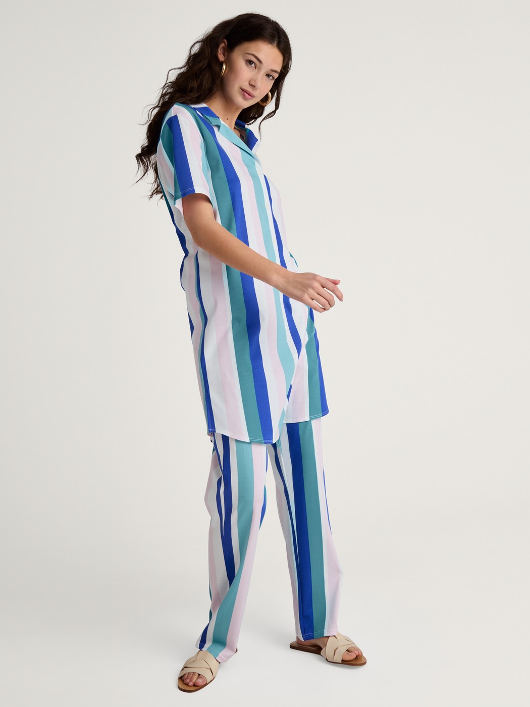 The FAVOURITES COAST mix & match range brings summer flair with an underwater world print in carnation pink on shorts, 7/8 trousers and a short-sleeved dress with a slight drape. The pieces are made from soft swiss+cotton/TENCELâ„¢ modal superlight fabric, which ensures lightness and breathability. A retro parasol stripe print in ice green adorns a short-sleeved nightshirt and straight-cut trousers. Plain-coloured T-shirts, shorts with a lace hem and 7/8 trousers in a Vichy check pattern complete the collection and offer maximum versatility. The wide range of possible combinations creates light, summery favourite outfits.