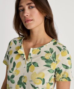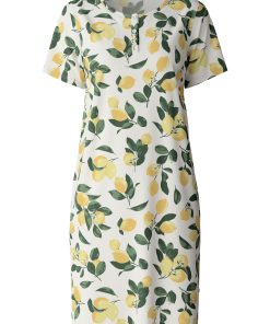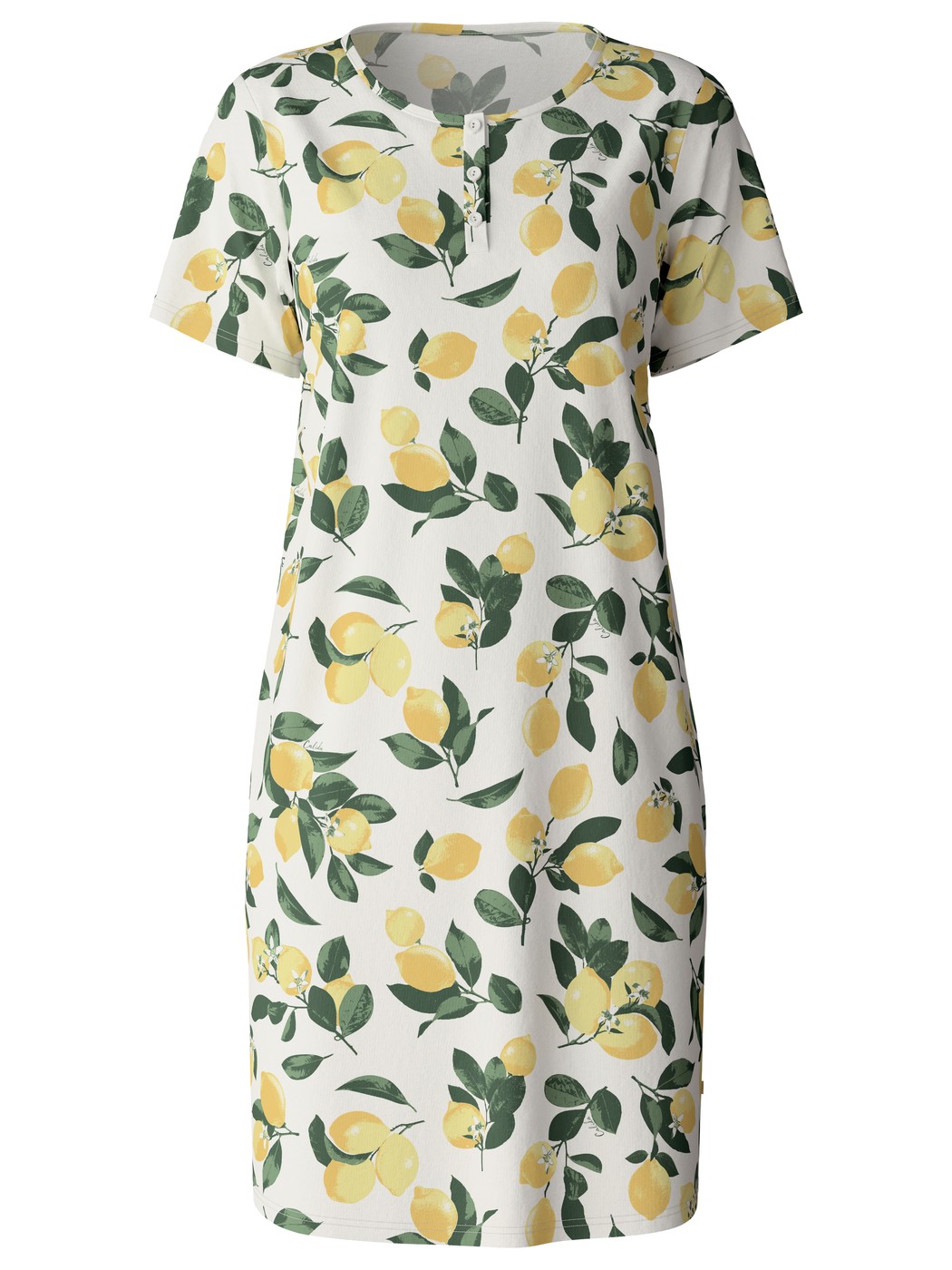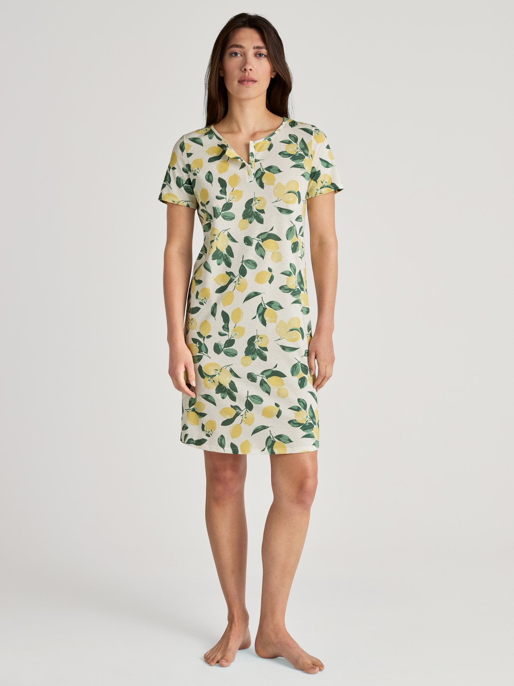 The FRUITY DREAMS sleepwear line in a radiant pineapple and lemon print brings summery lightness to the bedroom. Inspired by Greek moments of indulgence, the short-sleeve nightdress, short pyjamas, 3/4 pyjamas and buttoned pyjamas with an all-over print offer fresh new design and comfort. Made from 100% organic cotton, the line promises a soft feel, breathability and natural temperature regulation – perfect for warm summer nights. The flowing cuts ensure light and airy comfort.