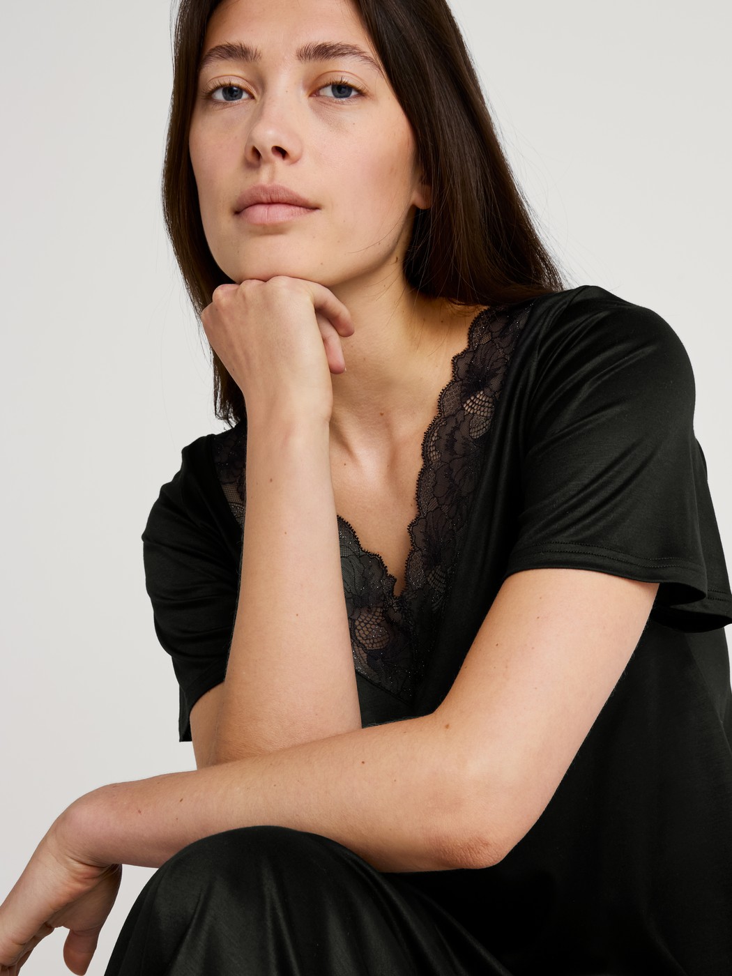 The feel? Indescribable. The style? Just the way we like it: the GLAMOROUS NIGHTS line has everything you could want from feminine sleepwear. Lace appliqués and the elegant black shade exude elegance and style. The weightless, silky Modal and comfortable cut deliver exceptional comfort.