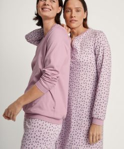 CALIDA Women’s Nightwear Midnight Flowers Long Sleeve Nightdress – 110 Cm Length | Fragrant Lilac