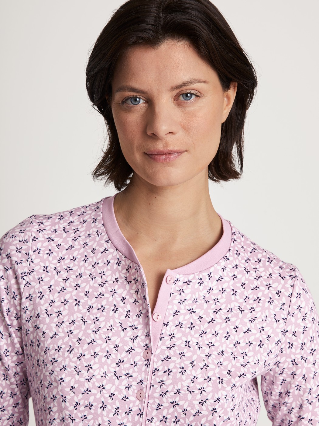 The MIDNIGHT FLOWERS sleepwear range puts the cold and bib attacks in checkmate. Extra-warm brushed pure cotton starts the game, then the comfortable cut follows suit and gives dull autumn and winter days a gentle shoulder in a timeless design.