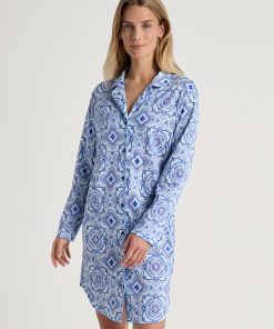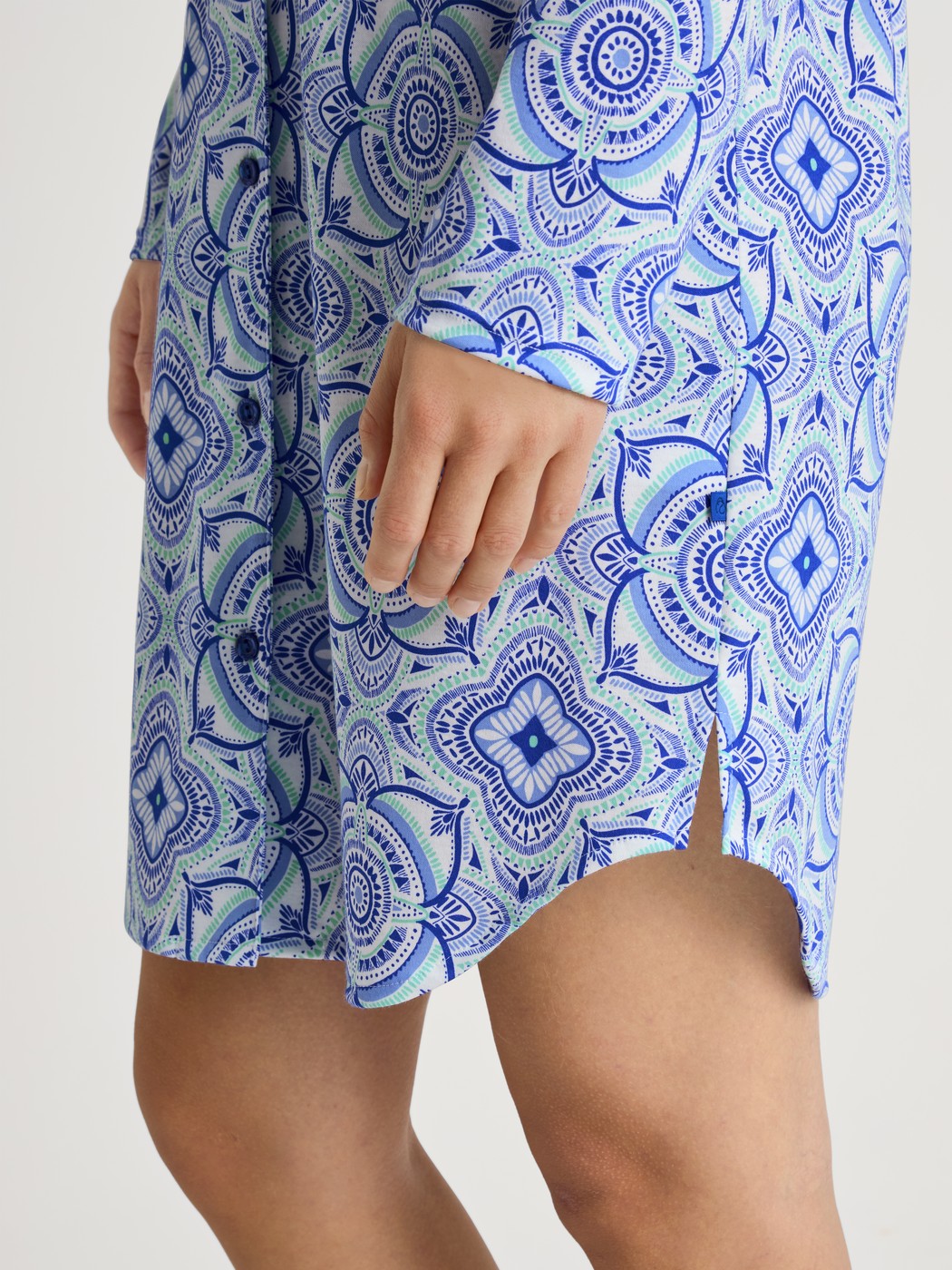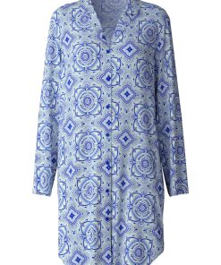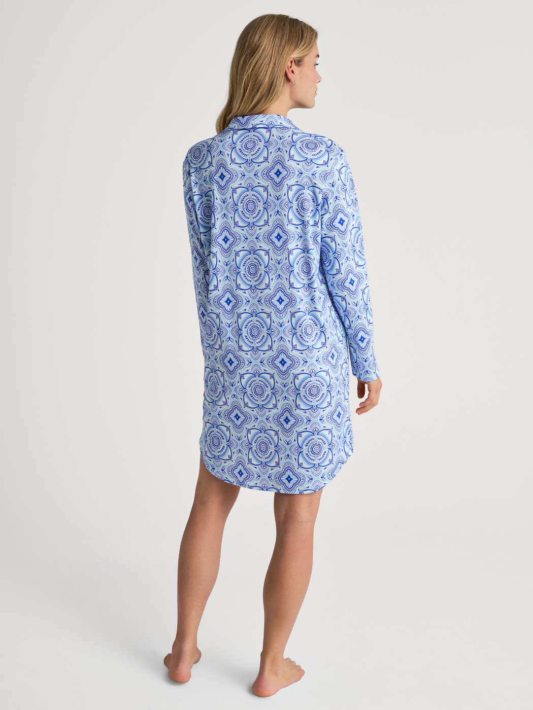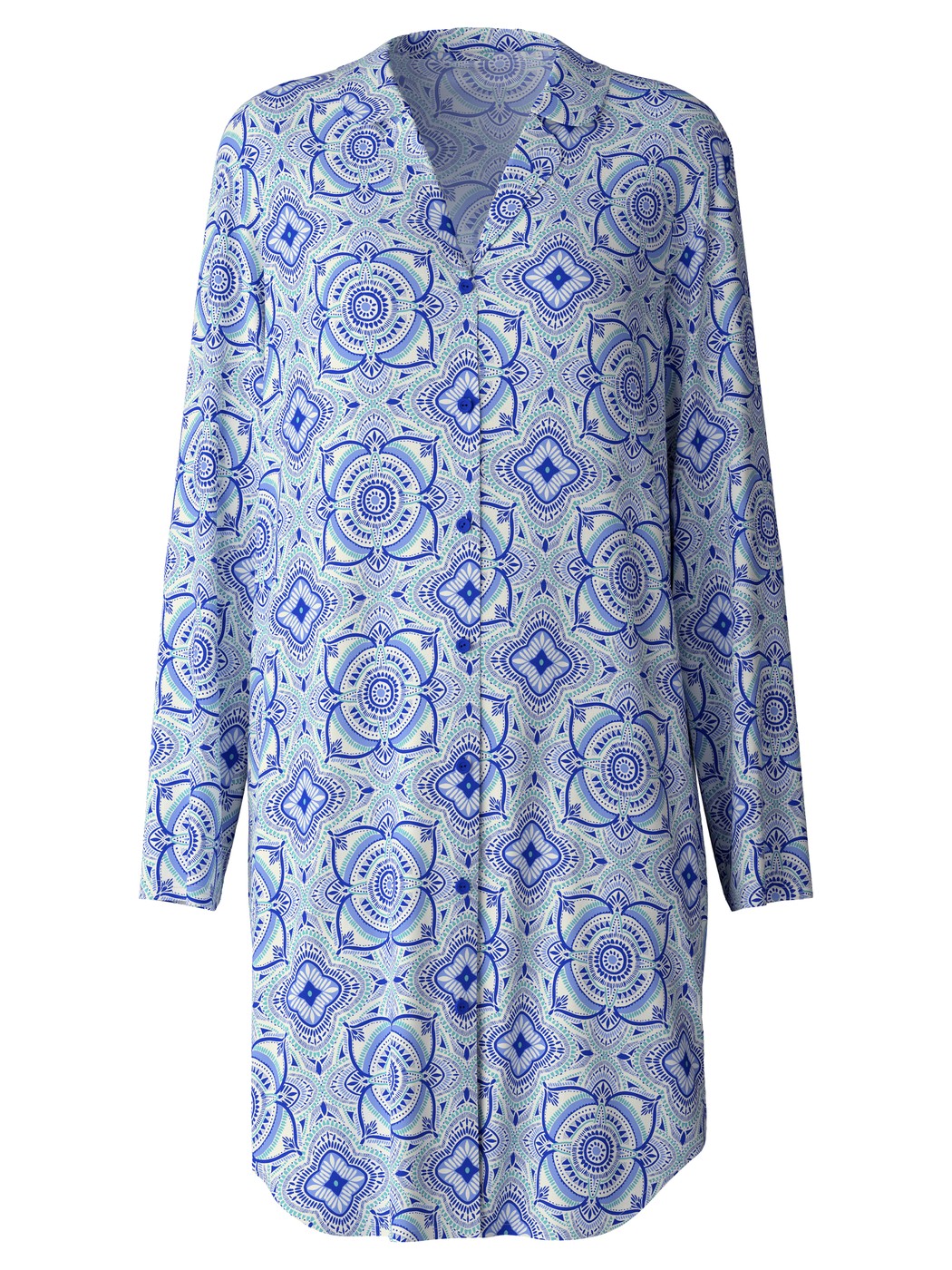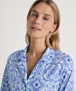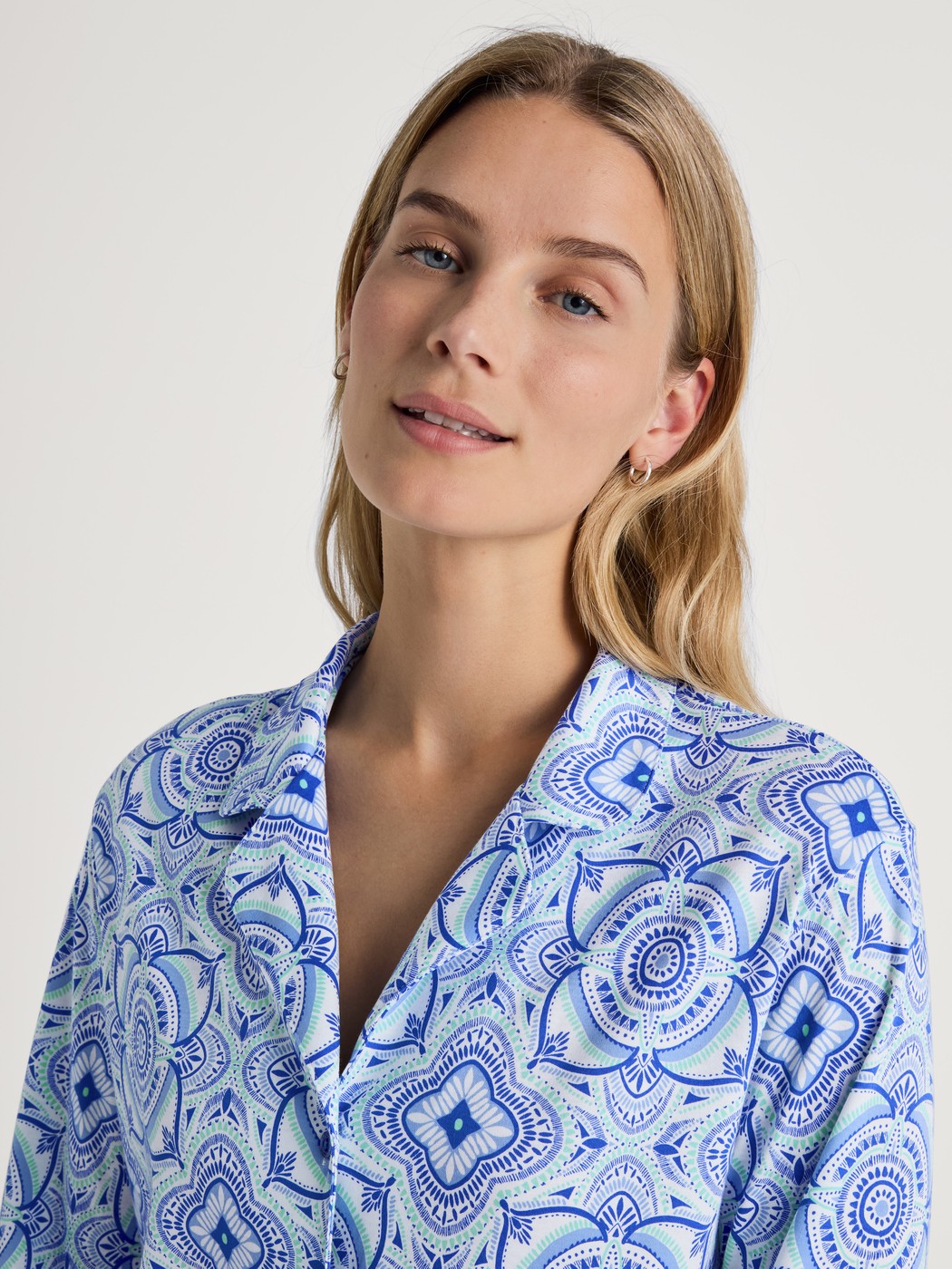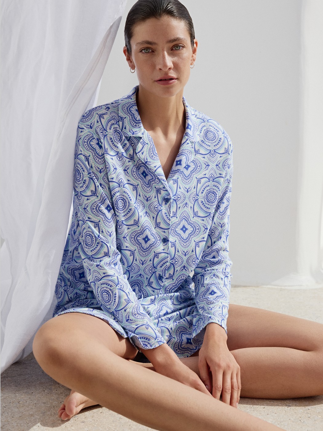 It’s almost a shame to only wear it in bed! Our ORIENT DREAMS sleepwear line in bright Dazzling Blue brings the charm of Greek art to the bedroom with its ornamental print. Made from high-quality SUPIMA® cotton, the pieces offer luxurious softness, high durability and brilliant colours. The modern cuts – like the buttoned pyjamas with palazzo pants, the airy nightshirt and the 7/8 pyjamas – are ideal for a relaxed night’s sleep and can be effortlessly integrated into your day-to-day. Classic pyjamas and cuffed pyjamas complete the collection.