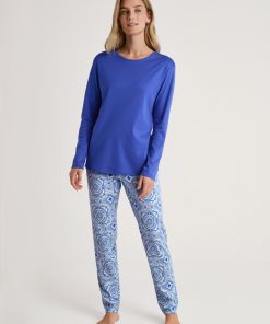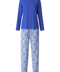 It’s almost a shame to only wear it in bed! Our ORIENT DREAMS sleepwear line in bright Dazzling Blue brings the charm of Greek art to the bedroom with its ornamental print. Made from high-quality SUPIMA® cotton, the pieces offer luxurious softness, high durability and brilliant colours. The modern cuts – like the buttoned pyjamas with palazzo pants, the airy nightshirt and the 7/8 pyjamas – are ideal for a relaxed night’s sleep and can be effortlessly integrated into your day-to-day. Classic pyjamas and cuffed pyjamas complete the collection.