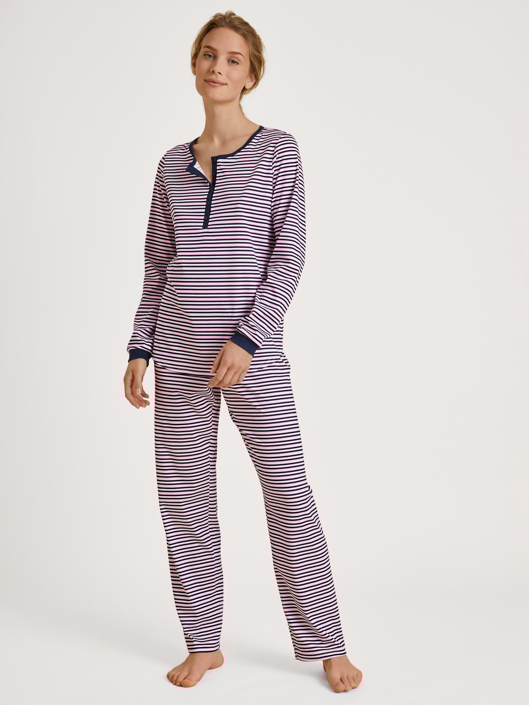 The pyjamas from the SWEET DREAMS series by CALIDA have a classic design. The modern cut and subtle details make the pyjamas with their all-over striped design a stylish snuggle yet cosy choice. The pure cotton in soft interlock weave will keep you cosy on cold nights, too.
