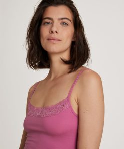 CALIDA Women’s Underwear Natural Comfort Lace Spaghetti Top | Red Violet