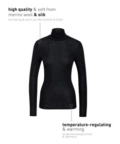 CALIDA Women’s Underwear True Confidence Long-sleeve Turtleneck Shirt In Wool-silk | Ws Schwarz