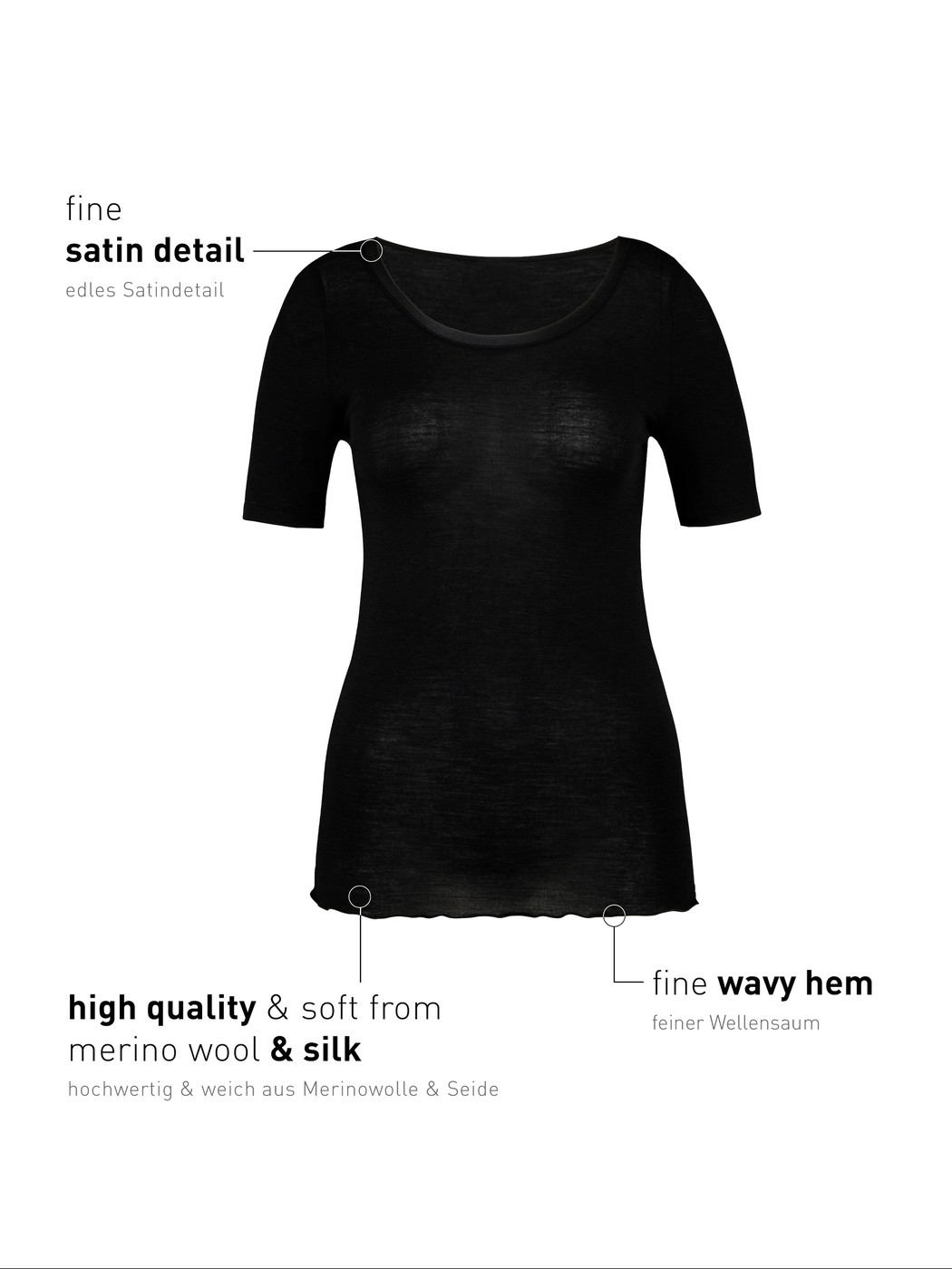 The basic short-sleeved shirt from the TRUE CONFIDENCE series by CALIDA is extremely soft and flatters even the most sensitive skin. Wool is able to absorb moisture well without feeling damp itself. This prevents the body temperature from dropping and you always have a pleasantly warm and above all dry feeling.